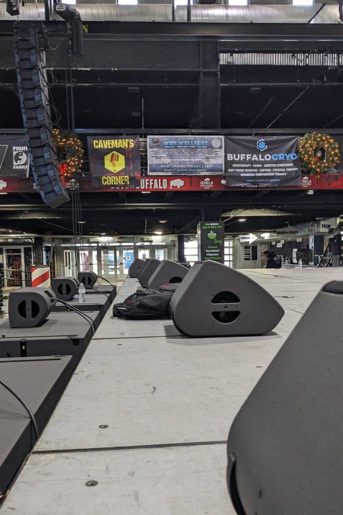 BUFFALO, New York – January 2024 – Buffalo RiverWorks has it all: a 5,000-person sports, entertainment, and concert venue; two covered outdoor ice rinks that have hosted the Labatt Blue Pond Hockey Tournament since 2014; the first permanent, purpose-built, flat-track roller derby track in the world; four bars, including one with axe-throwing; four ziplines; and the huge Buffal-O Ferris Wheel. It’s also a favorite of local bass-guitar hero Robby Takac, of the Buffalo-born Goo Goo Dolls, who uses the venue for his annual Music Is Art festival. And now this 60,000-square-foot multipurpose venue also has big sound to match its many options, with the recent addition of a new L-Acoustics K3 sound reinforcement system. The audio equipment was installed in December by Buffalo Pro Audio Group, and purchased through Las Vegas-based L-Acoustics Certified Provider 3G Productions, which also provided design services.