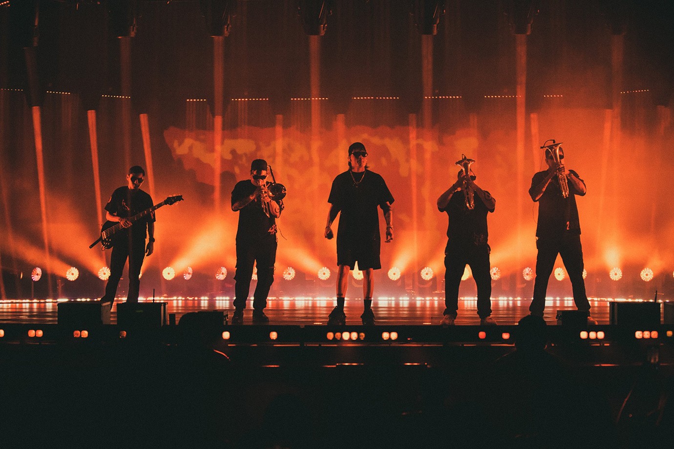 Dani’s company, FRAMEWORX, a diverse team of producers, directors, designers, and technicians with vast proficiencies in live and broadcast entertainment, have been active in the Latin market for several years now. They were able to execute the Peso Pluma tour in less than four weeks from phone call to opening night—an incredibly brief span of time. Two of those weeks were spent entirely on conceptualization before a single piece of gear was pulled. “I got a call from Max Perez, with Buena Vibra Group, who was managing Pluma’s branding; I had worked with him on Bad Bunny previously,” begins Dani. “Live Nation had booked a tour of Pluma dates without a single production element in place. They needed a touring production package design to present to Pluma’s management team. We at FRAMEWORX knew it was not going to be possible to do any fabrication, so lighting and video alone would do the heavy lifting as our main production elements.”