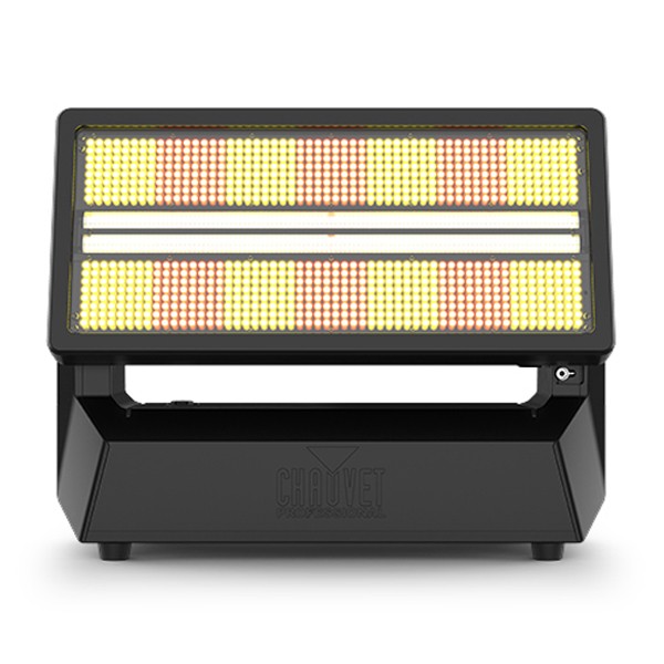 Color STRIKE M is an IP65 rated motorized strobe/wash with two ultra-bright, white light tube elements surrounded by an electrifying, color-mixing, and pixel-mappable face. This versatile strobe light can double as a wash fixture with 180° tilt range to throw bright saturated color wherever you need. The IP65 casing protects the fixture from any environmental factors or weather and has two omega-bracket attachments so you can mount the fixture horizontally or vertically without any hassle. Multiple programming personalities give you a varying amount of control from simple set ups with a multitude of built-in effects, or wider control options to take advantage of the pixel-mappable zones: 14 in the RGB face and 28 in the two tube elements. Built-in alignment pins insure perfectly straight linear arrays to create massive arrangements. DMX, Art-net, and sACN control. All LEDs feature 16-bit dimming for smooth fades and Pulse Width Modulation for on-camera use.
